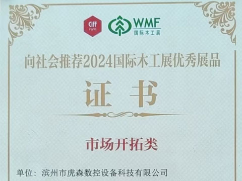 2024年9月11日-14日,CIFF上海WMF國際木工展在上海虹橋國家會展中心盛大開幕。濱州虎森數控設備科技有限公司出席參加了此次展會,憑借卓越的產品實力和創新精神,在眾多參展企業中脫穎而出,榮獲優秀展品證書。